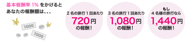 ※システムの都合上、海外旅行はアフィリエイトプログラム対象外となります。東京、大阪、名古屋、金沢、福岡発の個人型国内旅行のみが対象となります。