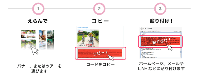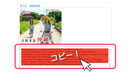 ジャンボツアーズのアフィリエイトプログラムは、好きな広告を選んでコピペするだけです。