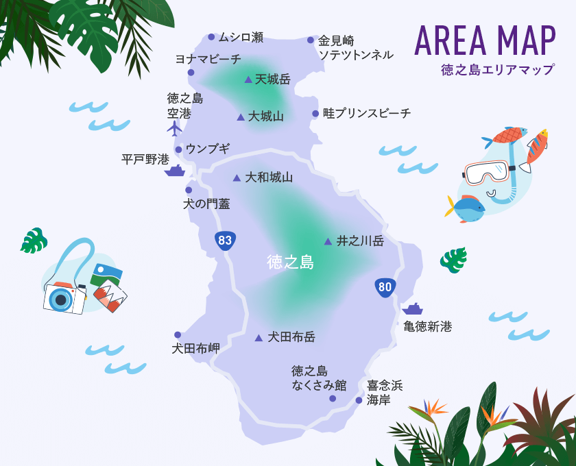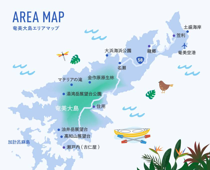 奄美群島の一つ奄美大島は、鹿児島本土と沖縄本島のほぼ中間に位置し、日本の離島のなかでは佐渡島に次ぐ2番めの大きさです。