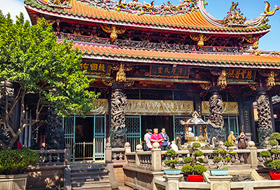 港出発(9:00) = 龍山寺 = 中正紀念堂 = 総統府 (車窓) = 民芸品店 = 金品茶楼にて飲茶の昼食 = 霞海城隍廟 = 廸化街散策 = (16:00)港帰着