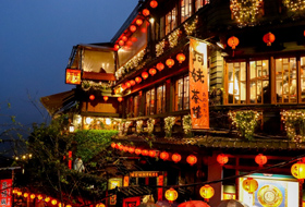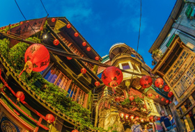 港出発(9:00) = 九份老街散策 = 九份郷土料理のご昼食 = 免税店 = 十分にて天燈上げ体験&十分老街散策 = (16:00)港帰着