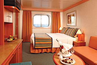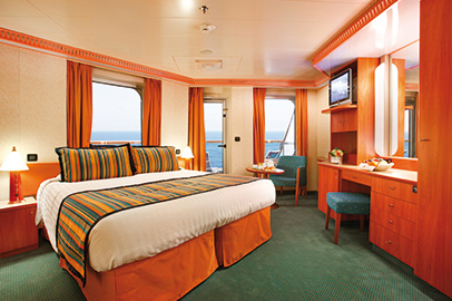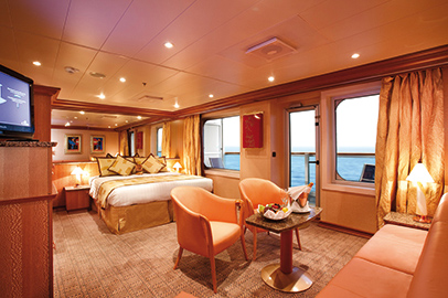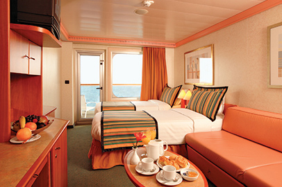 内側、海側、バルコニー、スイートなど、客室の広さや階数の違いでカテゴリーが分かれています。基本的にクルーズ代金の差は、客室の広さと位置の違いで設定されており、スイート客室の特典を除き、船内施設の利用制限やサービスに違いはありません。