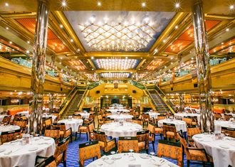 主な違いは、客室の階層と位置、およびメインダイニングでの食事時間です。