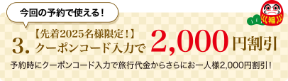 3.クーポンコード入力で 2,000円割引3.クーポンコード入力で 2,000円割引