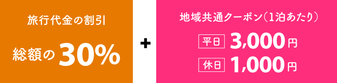 ※但し、交通付ツアーのおひとり様1泊あたりの割引額の上限は1万円になります。