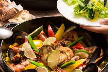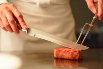 北海道産牛肉や新鮮な魚介類をシェフが目の前で丁寧に焼き上げる本格鉄板焼き。