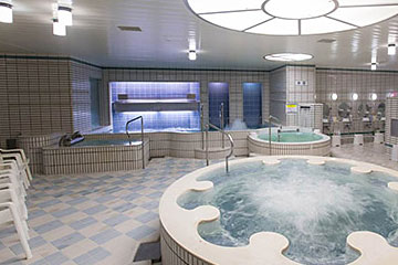 サウナとジャグジー、寝風呂、水風呂など温冷交互浴がデザインされたスパ施設です。