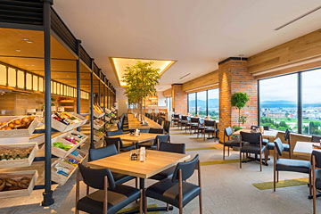 最上階から眺める270度のパノラマビュー!約60種類の豊富なメニュー のビュッフェレストラン。