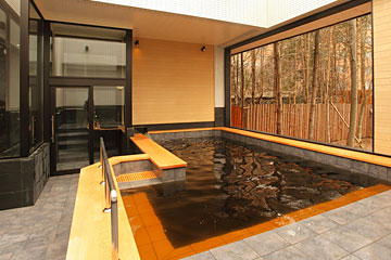 十勝の大自然を感じる開放的な露天風呂。泉質は美人の湯モール温泉です。