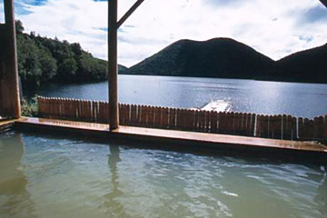 湖面の鼓動が伝わる湖にせりだした露天風呂。