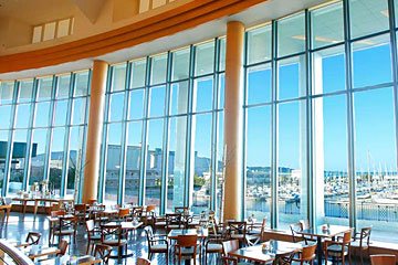 大きな窓の向こうに小樽港マリーナのパノラマビューを一望できる眺望抜群のシーサイドレストラン。