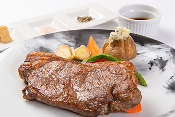 ボリューム満点の焼き立てステーキを提供するカジュアルレストラン。