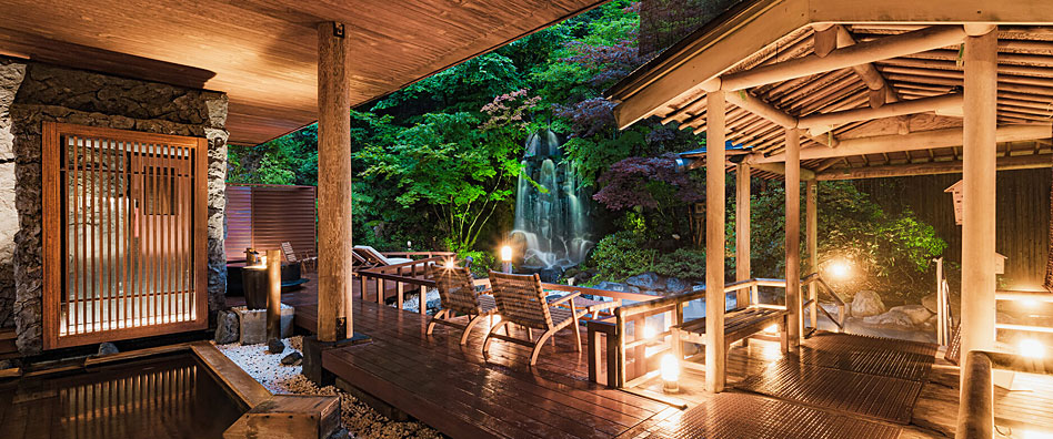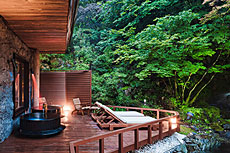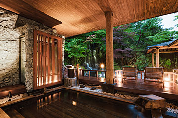 檜風呂と岩風呂があり、滝の音を聞きながらの入浴は日々の雑事からすうっと解き放たれます。