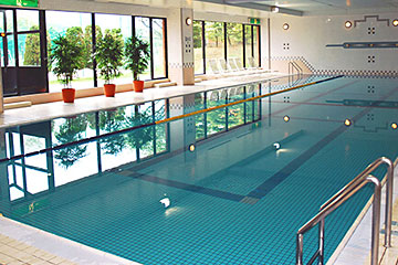 ガラス張りの向こうに洞爺湖の景色が広がるプール。水深70㎝の子供用プールもあります。