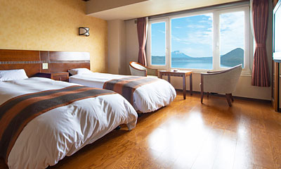 全室禁煙。湖側のお部屋です。窓に映る蒼と心地よい眠りで身体を休めてください。