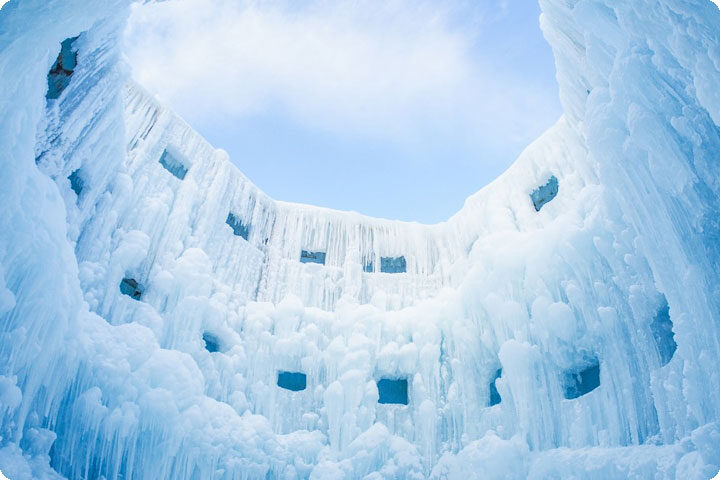 支笏湖ブルーの輝き、寒気が歓喜に変わる冬、支笏湖の水が織りなす青の世界に圧倒される美しさ。湖水をスプリンクラーで吹き付け凍らせた、大小様々な氷のオブジェが立ち並ぶ、北海道を代表する冬の祭典です。昼は支笏湖ブルーと呼ばれるナチュラルブルーに輝き、夜は色とりどりのライトに照らされ、幻想的な世界を演出します。