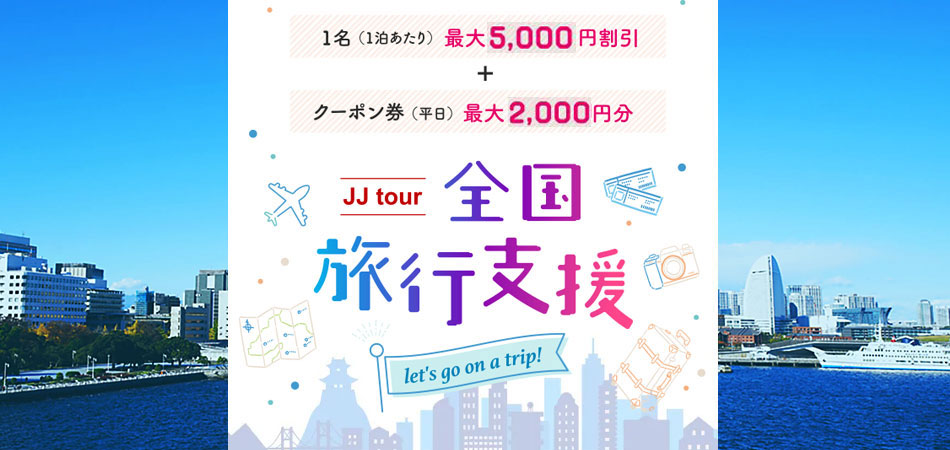 1名1泊最大 5,000円引+地域クーポン最大 2,000円(平日)