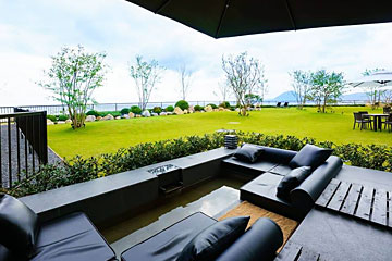 別府湾の潮風を感じながら解放感あふれる露天風呂で疲れをほぐしていただけます。