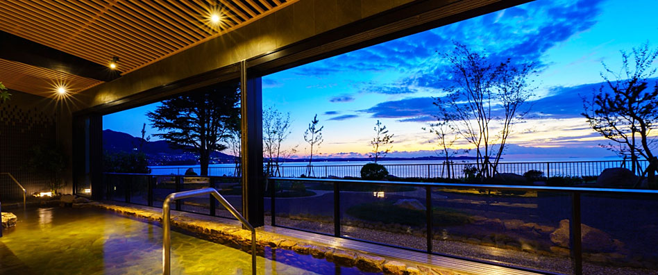別府湾を眺める天然温泉の大浴場をこころゆくまでお楽しみください。