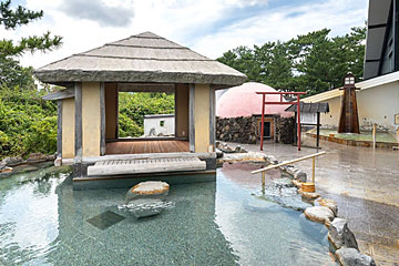 内湯の隣、一段高い眺望のよい場所にあり、その真中にはあづまや式休憩所を設置。癒しのひと時を。