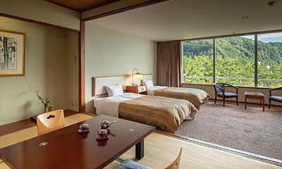 全室禁煙。居心地の良さを考え尽くしたお部屋でくつろぎのひとときをお過ごしください。(眺望山庭)