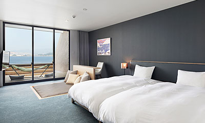 全室禁煙。オーシャンビューの広々としたバルコニー。カップルやグループでそれぞれの時間を。