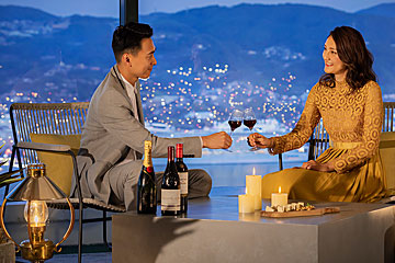 星のように瞬く1000万ドルの夜景を眺めながら、ドリンクを気ままに味わうセルフスタイルラウンジ。