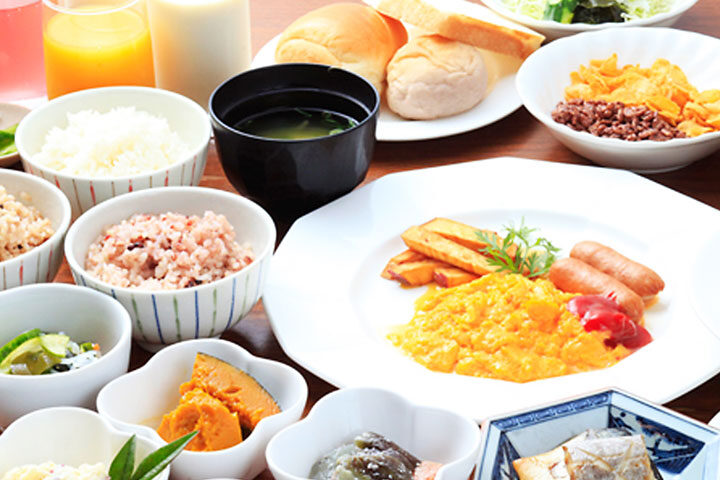 朝食付プランは、無農薬・有機野菜を使った旬の家庭料理をブッフェスタイルでご用意。