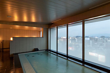 14階の最上階から夜景を眺めながらの湯浴み。心と身体を解きほぐす最高の癒やし空間。