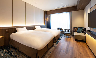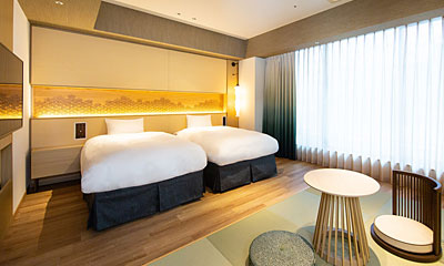 全室禁煙。夜の始まりの空から深い夜の空、夜明け前の空に浮かぶ星のひかりをイメージした客室。
