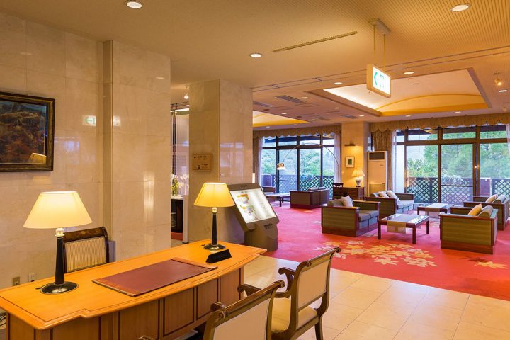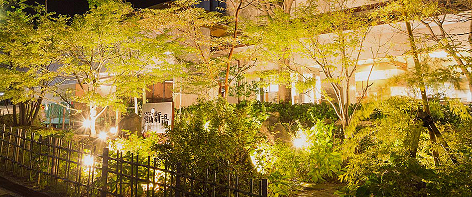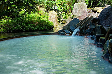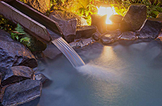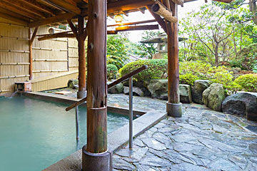 男性大浴場「絹笠の湯」婦人大浴場「佳宵の湯」はそれぞれ庭園露天風呂を備え、濃度の高い湯が特徴。
