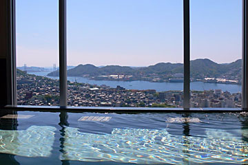長崎の街を一望できる本館展望風呂です。 鉱火石のお風呂で芯まで温まります。
