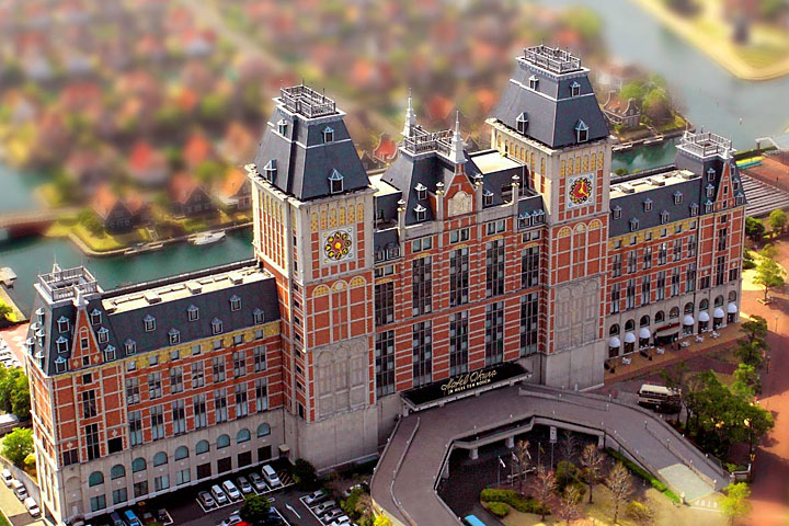 オランダ・ルネッサンス様式の代表的建築と称されるアムステルダム中央駅。そのイメージを再現した建物は、瀟洒なフォルムで佇んでいます。館内には天然温泉大浴場、露天風呂も完備。また、ご宿泊者専用ハーバーよりクルーザーにてハウステンボスへご入場いただけます。