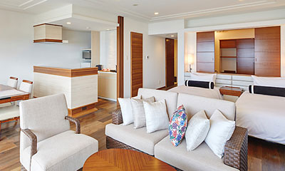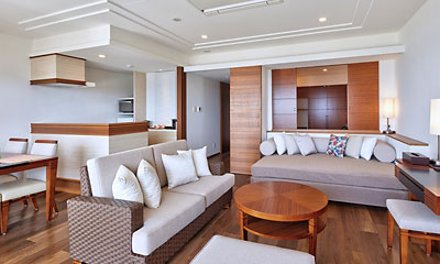 全室禁煙。全室オーシャンビューで太陽の光が入りこむワイドスパンの窓は解放感満点。