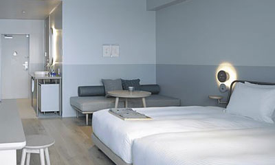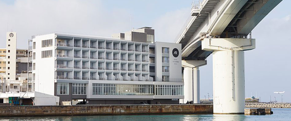 アート&カルチャーを軸に人が集い、つながることで那覇に新しいシーンを創出することを目指すホテル。全室からハーバービューを望む客室は、ブルーグレーを基調に海との連続性を意識し、アートが引き立つようなシンプルな空間です。