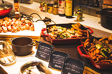 洋食のみならず和食・沖縄料理・BBQなどインターナショナルなご馳走が並ぶカジュアルレストラン。