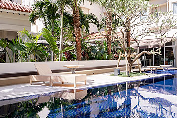 シティリゾート感を味わえるヤシの木に囲まれた屋外プール。夏季営業(4月~10月)