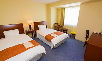 全室禁煙。シンプルなスタンダードツインのお部屋です。