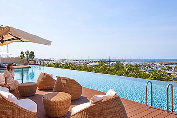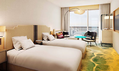 宜野湾港マリーナ前、地上14階建て全室テラス付きのオーシャンビューリゾートホテル。ホテル2階には、海との一体感を楽しめるインフィニティプールがあり美しい景色が望めるロケーション。移り変わる海の風景をお楽しみください。