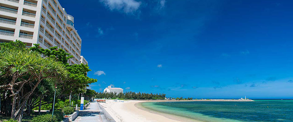沖縄海岸国定公園に位置する贅沢なロケーション、白浜が800m続く天然のビーチ。エメラルドグリーンの海まで徒歩0分、空の色を染めるサンセット沖縄の海風、優しい波音が迎えてくれます。