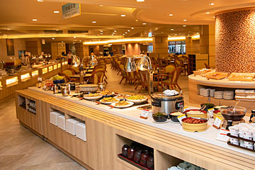 ビーチを眺めながら、バラエティー豊かな朝食を和洋食バイキングスタイルでお楽しみください。