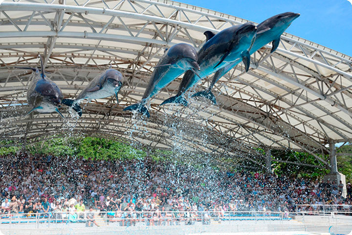 公園内には、沖縄随一の人気スポットである沖縄美ら海水族館や海洋文化館、植物園など多数の施設があります。美ら海水族館では魚類最大のジンベエザメ、ナンヨウマンタが観察できます。また、オキちゃん劇場では青い海をバックにイルカたちが楽しいショーを繰り広げ連日多くの人を愉しませてくれます。