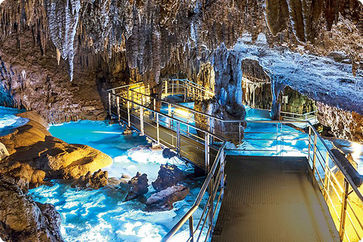 おきなわワールド内にあり、全長5,000m、鍾乳石100万本以上と国内最大級の鍾乳洞でその一部890mが公開されています。滴り落ちる水の音が聞こえてきたりと地底の時間を体感してください。おきなわワールドは他に、熱帯フルーツ園・伝統工芸体験・琉球王国城下町・エイサーショー・ハブとマングースのショー・ハブ博物公園があり沖縄の自然や文化が体感できるスポットです。