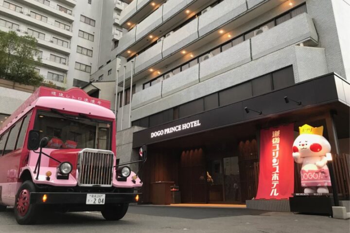 有数の広さを誇るサウナ併設の大浴場、四季を感じながら入れる開放感あふれる多種多様な露天風呂に足湯、さらには貸切露天風呂と心も体もゆったりとほぐしてくれる温泉めぐりを堪能できる。愛媛の都市伝説「オレンジジュースが出る蛇口」もあり飲み放題。また、ホテル名物の送迎バスは、懐かしさ漂うレトロなボンネットバスに乗れば、タイムスリップしたような気分が味わえる。
