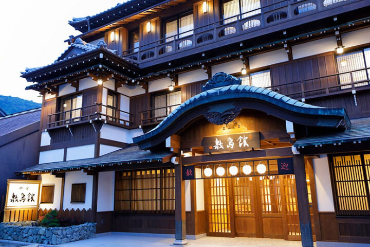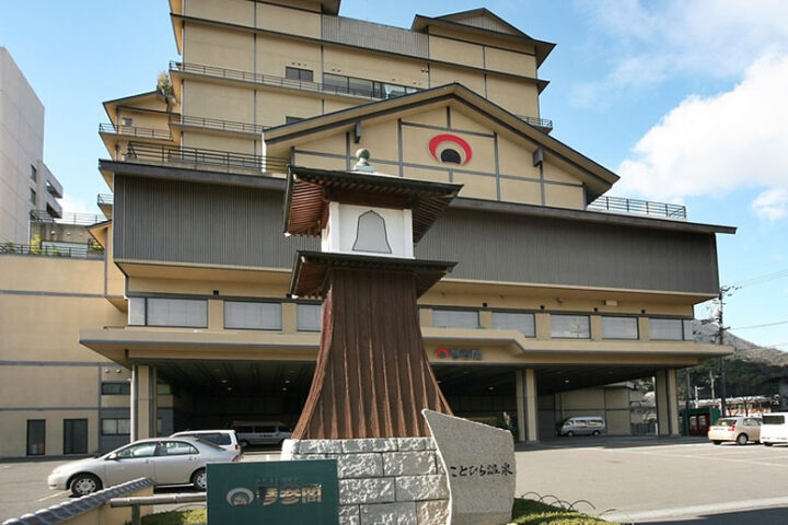 古くより琴平に訪れる人々の癒しの場として親しまれていた敷島館。その歴史的景観を守り由緒ある金刀比羅宮の表参道に面した立地に復活。大浴場のほか4つの貸切風呂、足湯など多彩な湯処で天然温泉が愉しめる。また湯上りに夜はアイスキャンディー、朝はドリンクのうれしいサービスが。風情ある空間で寛ぎのひとときを堪能できる。