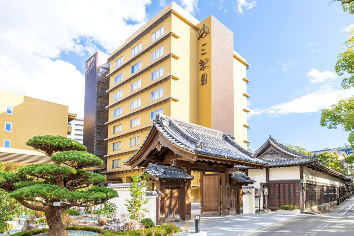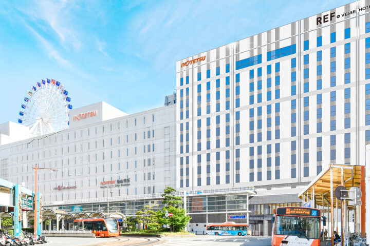 伊予鉄道松山市駅に隣接するホテル。ゲストルームは、和の要素をとり入れた木の香りと温もりを感じるシンプルモダンな空間で落着きのひとときを提供。館内には、サウナを設置した大浴場と貸し切りで楽しめる家族風呂を完備。また、ウェルカムサービスとして、ドリンクやアイスキャンディーをご用意。中でも100%ストレートの温州みかんジュースを使用したオリジナルのソフトクリームは絶品。