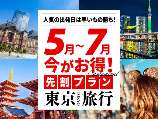 大都市「東京」や周辺エリアも取り揃えました!テーマパークで遊んだり、都会のショッピングや最新グルメをチェックしたり、関東旅行の楽しみ方は自由自在!
