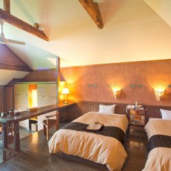オランダ風のテーマパークであるハウステンボスの敷地内にある、ユニークなコテージタイプのホテル。森に囲まれたエリアにあり、運河を見渡せる。住吉神社から 1 km、波佐見温泉から 15 km