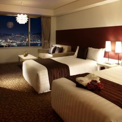 長崎港を見渡す高級ホテル。稲佐山から 2 km、長崎原爆資料館と長崎駅からそれぞれ 3 km