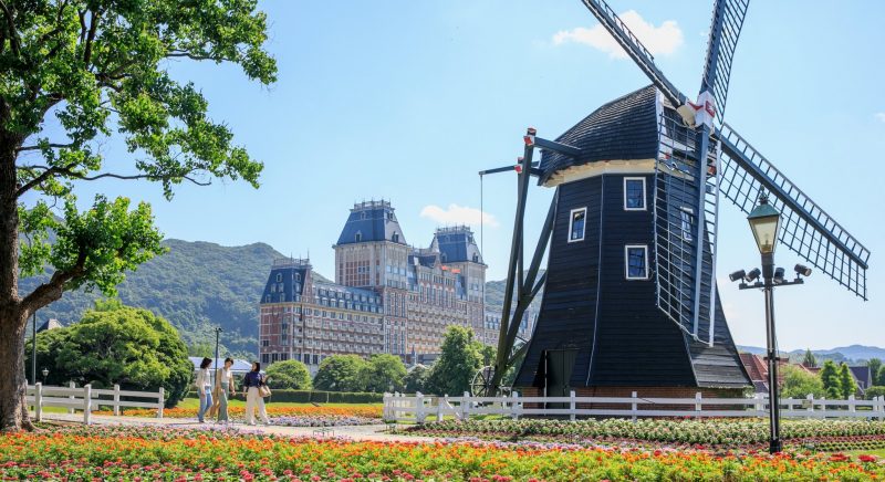 19 世紀のオランダをイメージした内装が特徴的な運河沿いの荘厳なホテル。オランダをテーマにしたアミューズメント パーク、ハウステンボスから徒歩 7 分